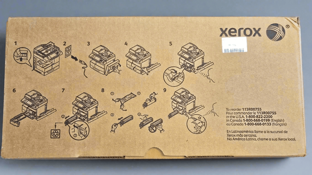 Unpack the new Xerox 113R00755 cartridge and gently shake to distribute the toner.