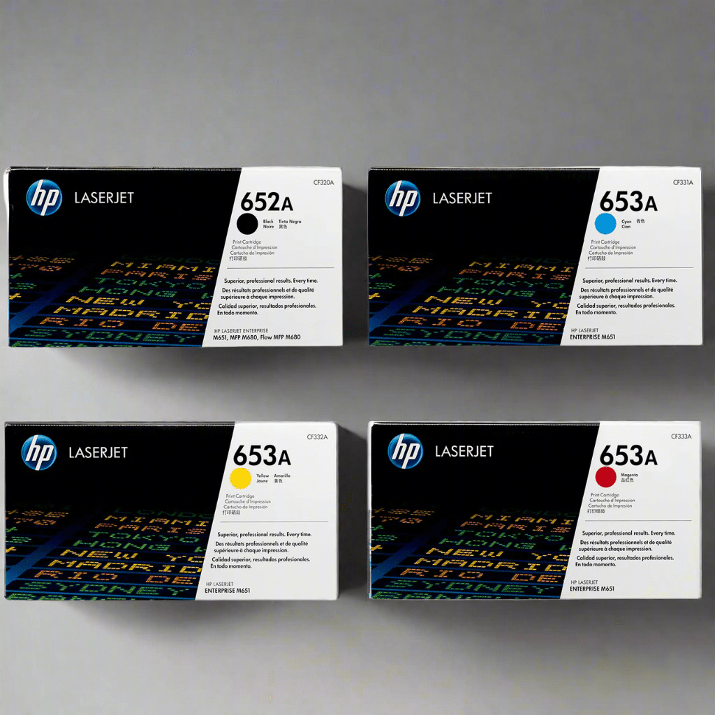 Ensure superior print quality and reliability with the Genuine HP 652A 653A Toner Cartridge Set. Designed for HP Color LaserJet Enterprise printers, this set delivers crisp text, vivid colors, and consistent results for high-volume printing needs.